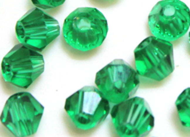 Биконус 4х4мм in-d 1мм хрустальное стекло 90шт.цвет:изумруд 21010241