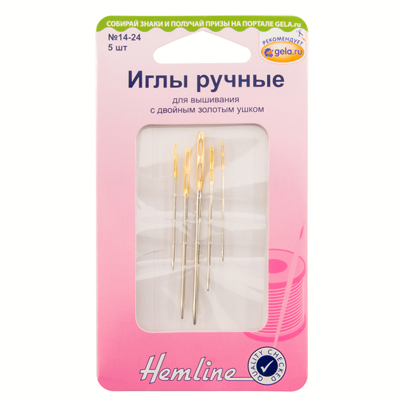 Иглы ручные для вышивания с двойным ушком и закругленн.кончиком №14-24,5шт.